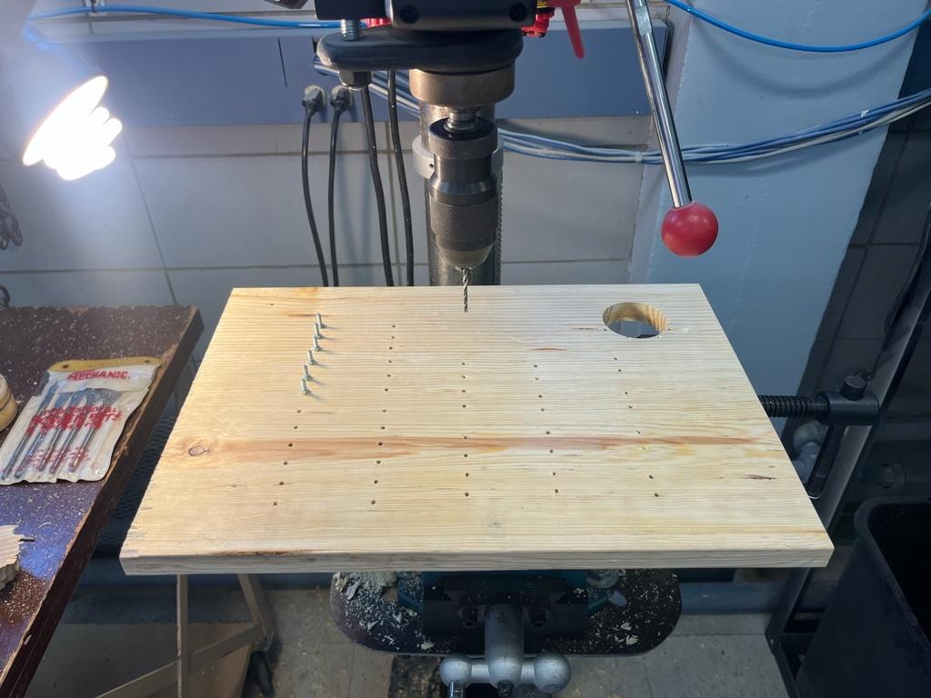 I then used a drill press to drill the holes for the paper circuits. I test fit the first few.